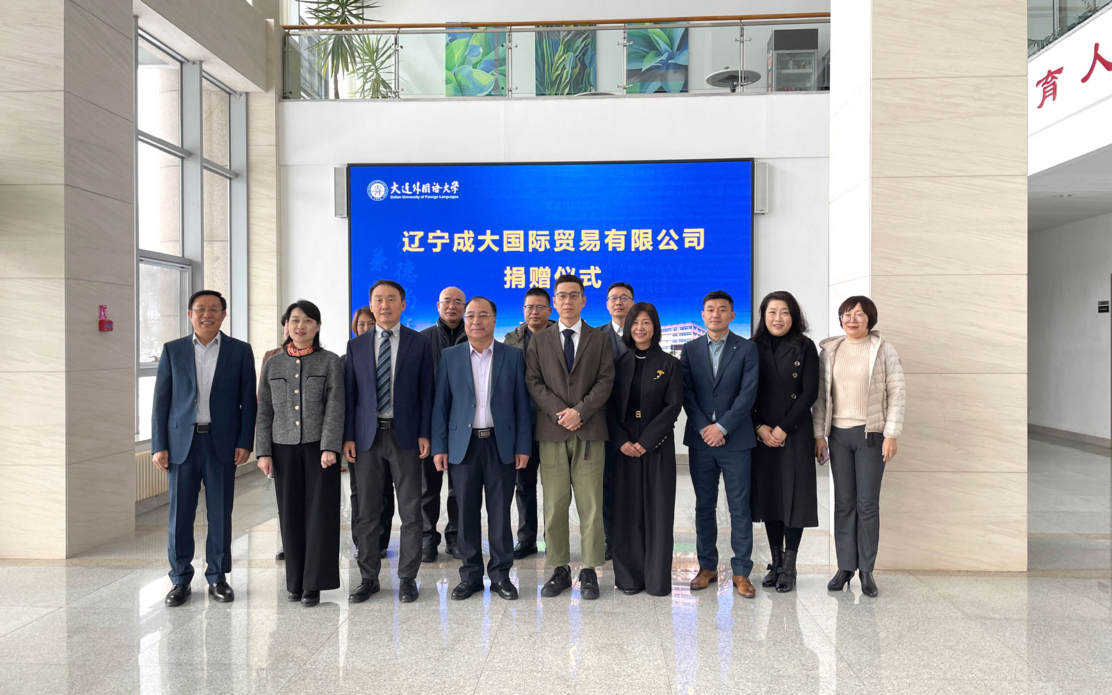 成大國際董事長金春洙、總經(jīng)理高原等一行七人,大外黨委副書記叢明才及相關(guān)部門負責人出席捐贈儀式。儀式由大外校友工作處副處長卞瑩主持。